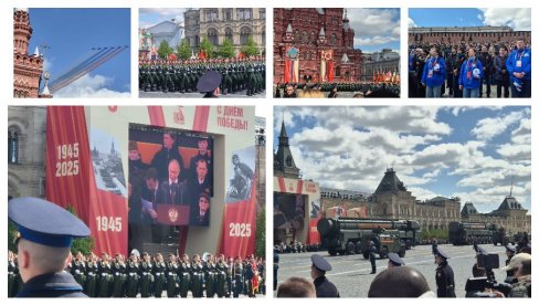У МОСКВИ је данас одржана војна парада организована поводом Дана победе у Другом светском рату, у којој је учествовало више од 11.500 војника Министарства одбране Русије и других безбедносних структура, али и стројеви других земаља - учесница рата. "Новости" су биле на лицу места и доносе вам ексклузивне фотографије и снимке.