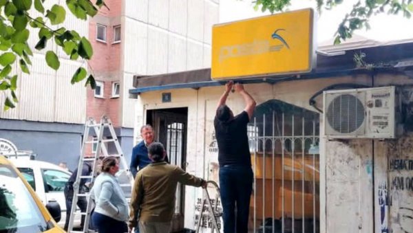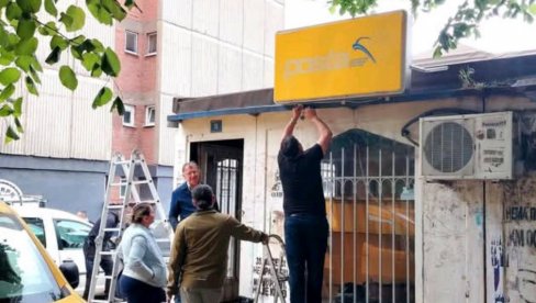 ЗАТИРУ СВАКИ СРПСКИ ТРАГ: На објекту у центру Митровице постављена табла поште тзв. Косова