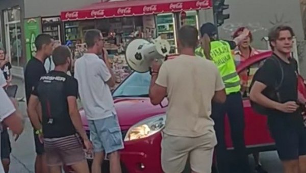 Блокадери су је одмах окружили, а ту се нашла и полицајка која је нешто објашњавала жени возачу.
