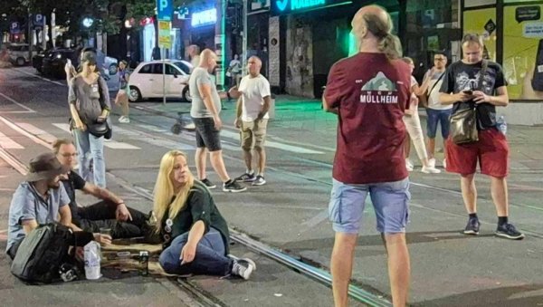 ТЕРОР ЗГУБИДАНА БЛОКАДЕРА НЕ ПРЕСТАЈЕ: Њих двадесетак се опија и блокира једну од главних улица у Београду (ФОТО)