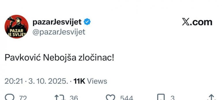 СРАМНА ПОРУКА ВОЂЕ БЛОКАДЕРА ИЗ НОВОГ ПАЗАРА: "Небојша Павковић је ратни злочинац"