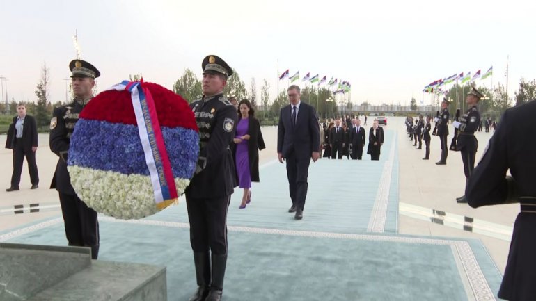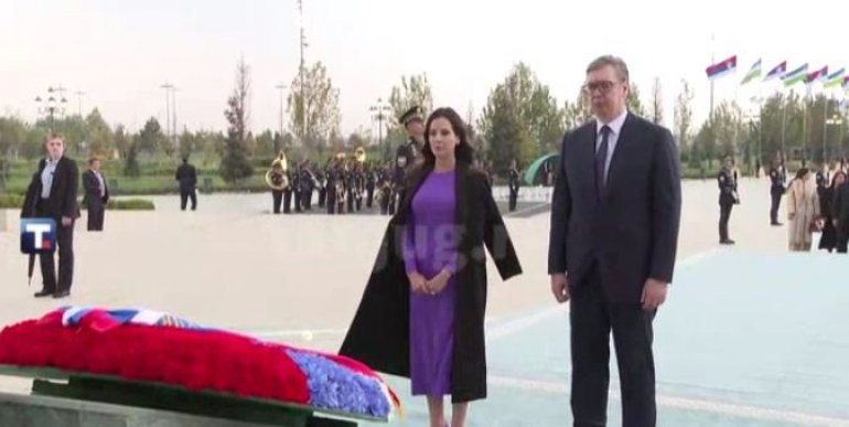 ПРЕДСЕДНИК Србије Александар Вучић положио је данас венац на Споменик независности у парку "Нови Узбекистан" у Ташкенту.