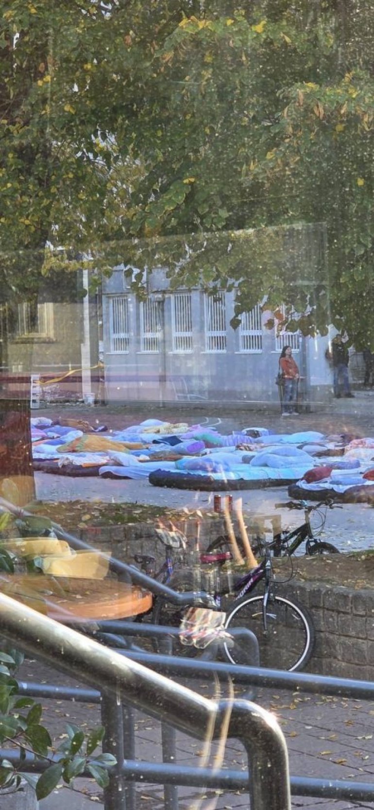 На фотографијама које су кружиле интернетом током ноћи из Инђије, кревет до кревета, душек до душека, све под конац, као да се спрема војна вежба. Али студената? Ни трага ни гласа.