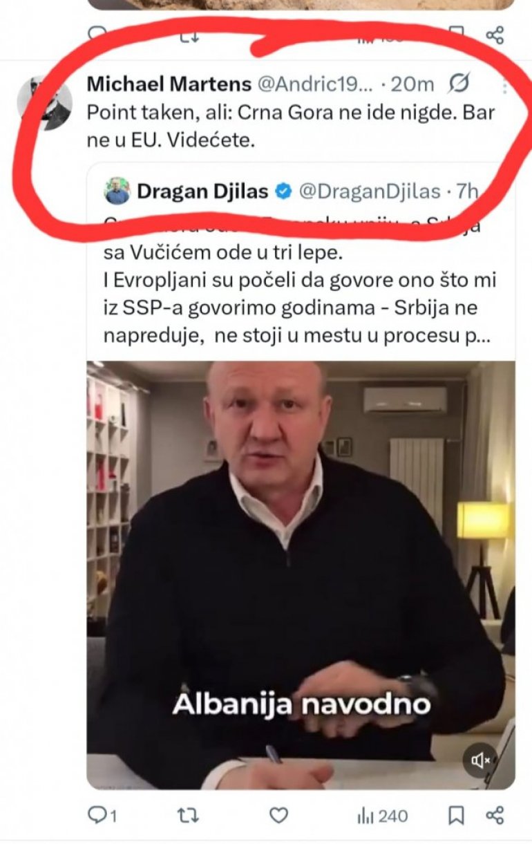 НОВИНАР Михаел Мартенс, политички дописник листа Франкфуртер алгемајне цајтунга, одговорио је председнику ССП-а Драгану Ђиласу.