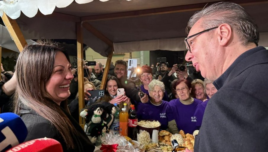 Вучић обилази штандове са рукотворинама и локалним производима које су припремили мештани: