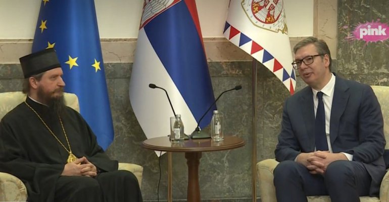 ПРЕДСЕДНИК Александар Вучић састао се са епископом бихаћко-петровачким Сергијем, који му је уручио Орден Новомученика бихаћко-петровачких за показано доброчинство и велику љубав према тој епархији и манастиру Рмањ.