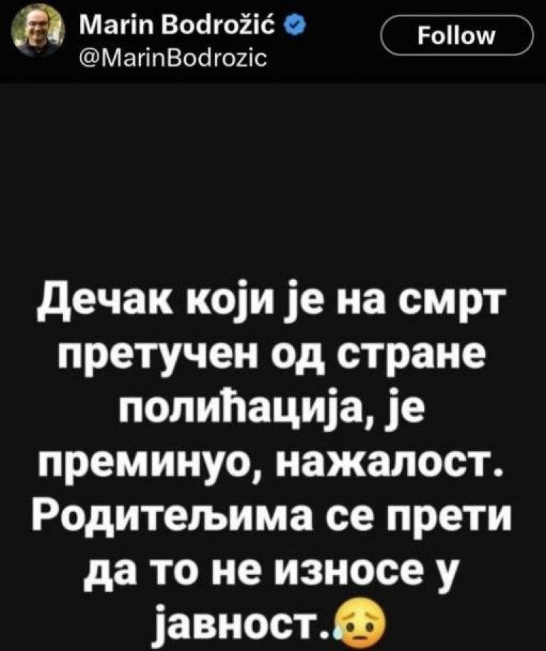 Али то није представљало препреку блокадерима да наставе да шире бруталну лаж иако за то што тврде не постоји ниједан једини доказ, чак ни име наводног дечака. Проливање крви на улицама им је очигледно једини план који имају.