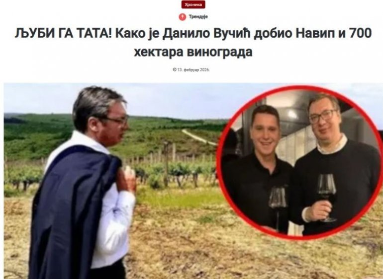 Наиме, на мети блокадерских медија нашао се Данило Вучић, а они су масовно кренули да деле лажи о томе како је Данило на поклон добио компанију Навип и чак 700 хектара винограда!