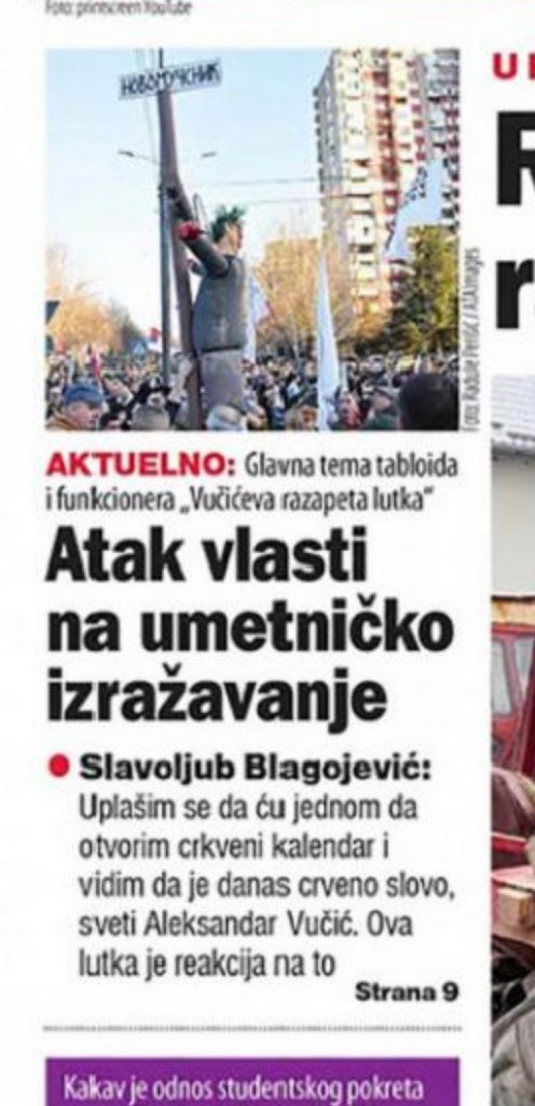 ШОЛАКОВИ ЛИЦЕМЕРНИ БЕДНИЦИ! За њих је позивање на убиство и разапињање “уметничко изражавање”, али само кад се ради о Вучићу!
