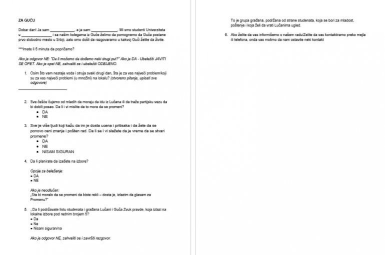 Наиме, у документу до ког смо дошли наводи се како би блокадери из Гуче и Лучана требало да разговарају са грађанима у оквиру кампања од врата до врата.