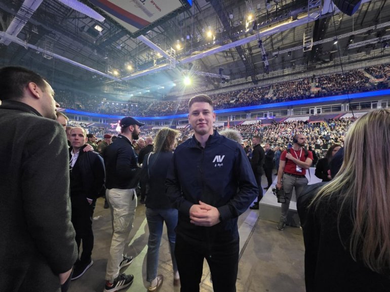 У Арени је и студент Милош Павловић како би изразио своју подршку СНС и Александру Вучићу.
