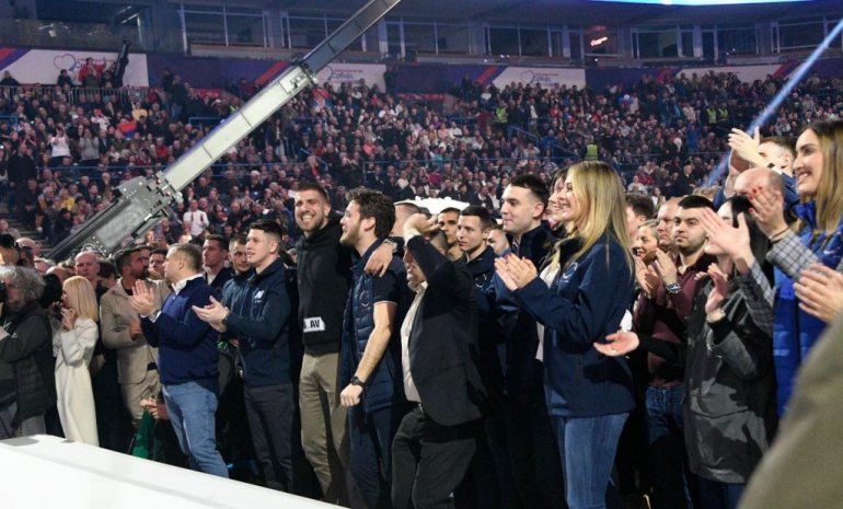 ВУЧИЋ У КРЦАТОЈ АРЕНИ ПОСЛАО СНАЖНУ ПОРУКУ: Србија је наша породица (ФОТО/ВИДЕО)
