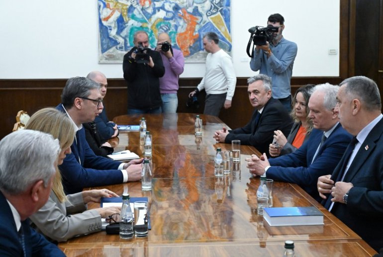 У Председништву Србије су нешто после 13.30 завршене консултације председника Александра Вучића са представницима странке Ми-глас из народа.
