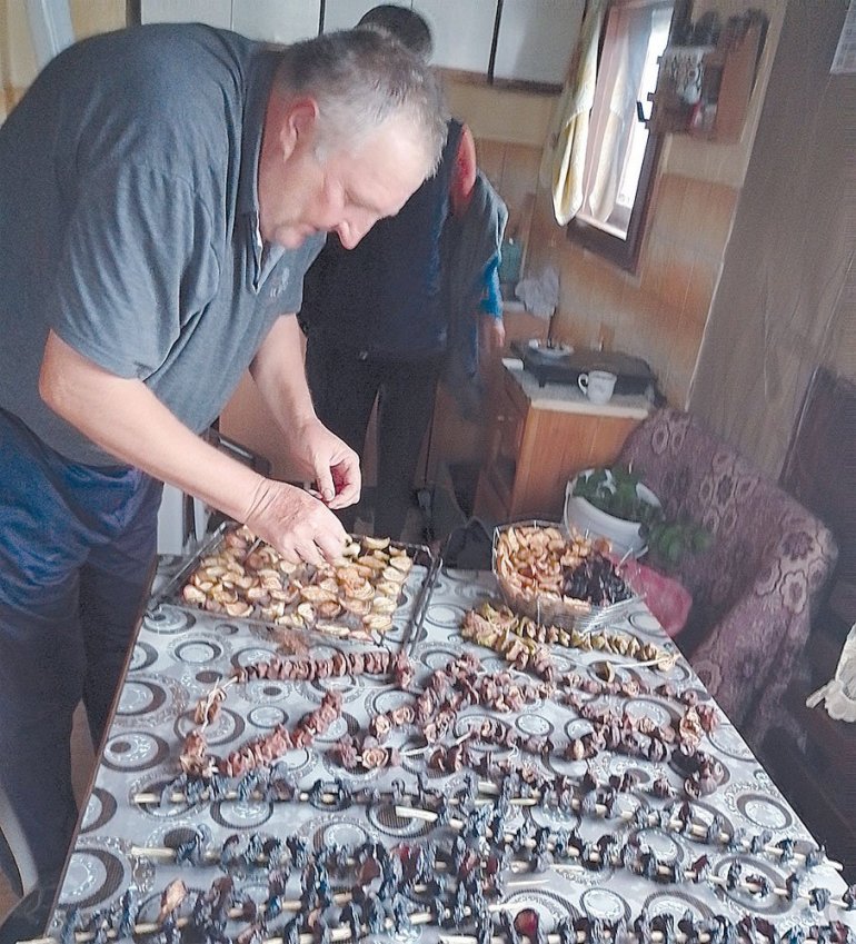 U zaseoku ispod Talambasa i Brijača nema savremenih sušara, ali zimu ne čekaju bez sušenog voća. Niske isečenih krušaka i jabuka suši promaja: na brvnima, pod strehom, kao i šljive nanizane na prut. Ponekad drva "smederevca" u kuhinji, na rešetki u rerni i tihoj vatri, greju kriške voća sat i po, pa se sušenje nastavlja na policama kolibe ili pod tremom.