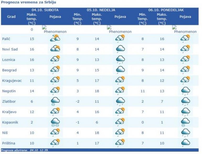 - U nedelju novo prolazno oblačenje ponovo krajem dana, a u ponedeljak pre podne padaće kiša. Otopljenje postepeno kreće od srede, četvrtka, u drugoj polovini sledeće nedelje. Sledeći petak temperatura će opet biti oko 20 stepeni, dakle, normalna je za ovo doba godine, a udrugoj dekadi oktobra kreće i Mihojsko leto, to će biti temperatura između 20 i 25 stepeni.