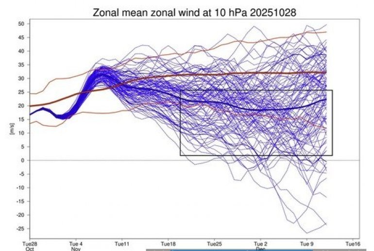 Najnovije prognoze najavljuju usporavanje stratosferskih vetrova što govori da dolazi i do usporavanja ili slabljenja polarnog vrtloga, i prema najavi meteorološkog sajta “Severe Weather Europe” “izgleda da nas očekuje zanimljiv početak klimatološke zime 2025/2026.”