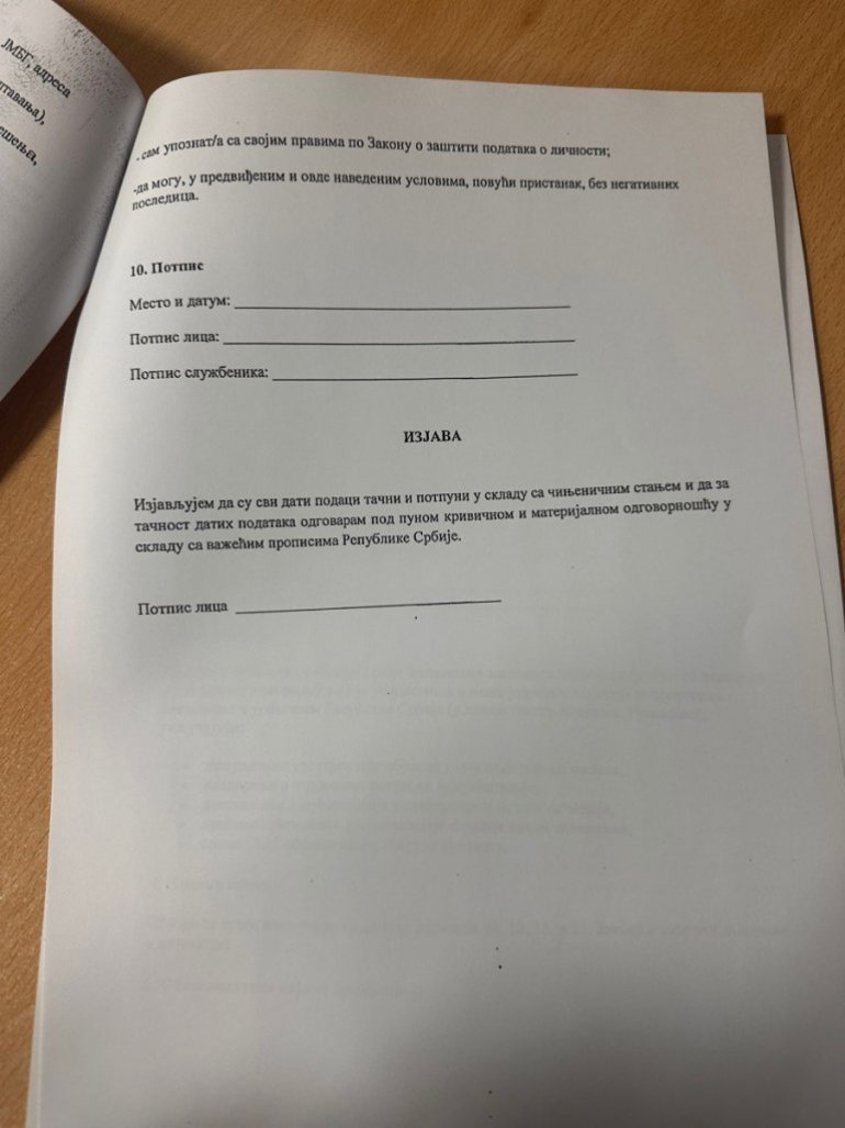 Obrazac se popunjava u dva primerka.