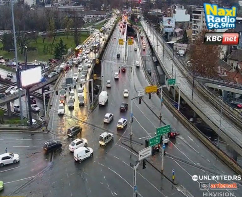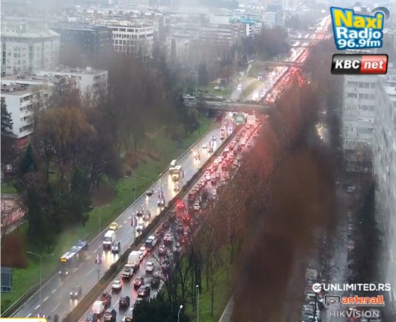 Kiša koja pada dodatno je usporila saobraćaj u većem delu Beograda.