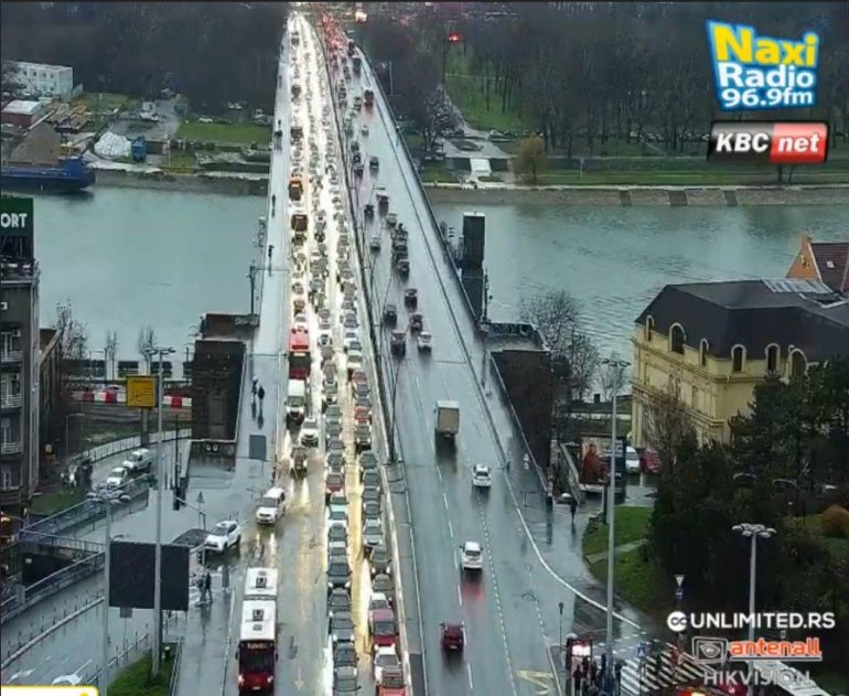 Ništa bolje nije ni na Brankovom mostu, u smeru ka gradu.