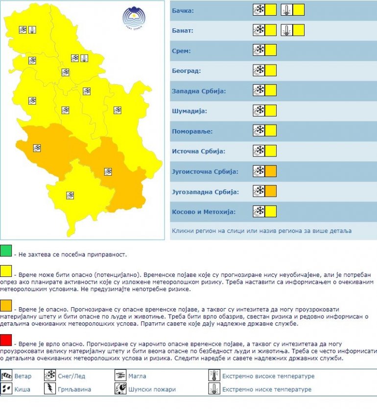 METEO ALARM U SRBIJI LEDENI DAN PRED NAMA: Vremenska prognoza za subotu, 10. januar