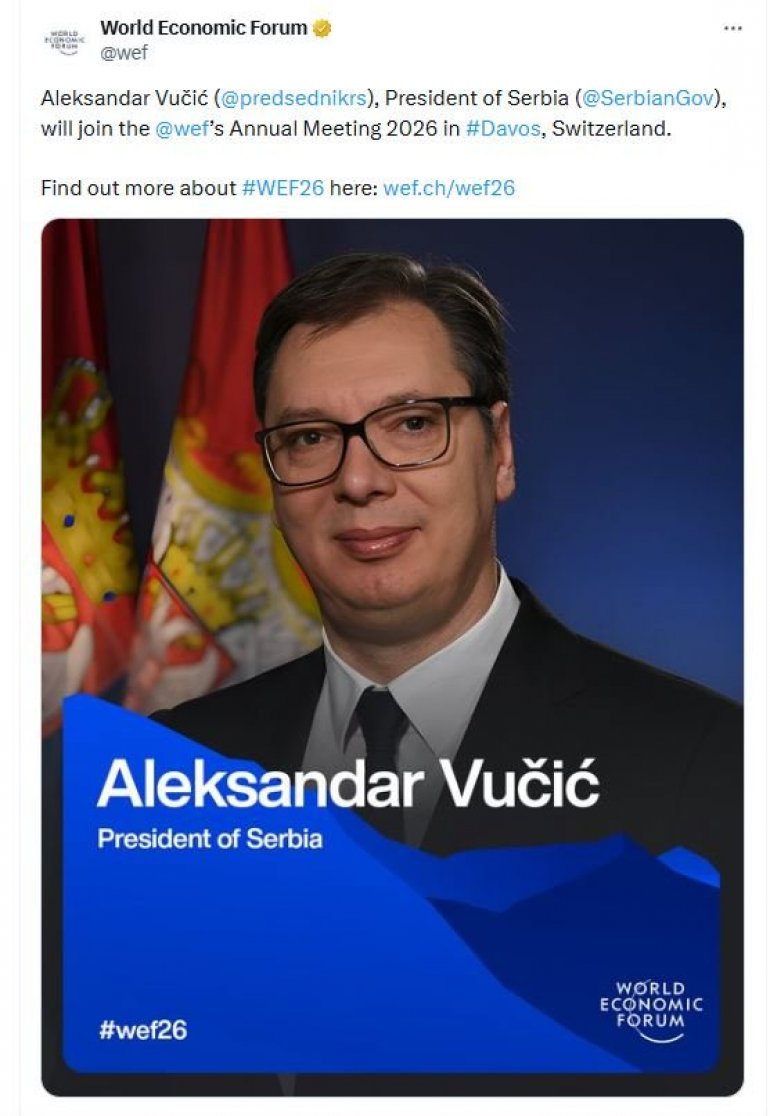 PREDSEDNIK Srbije Aleksandar Vučić učestvovaće na Svetskom ekonomskom forumu (WEF) koji će se održati od 19. do 23. januara u Davosu, objavili su organizatori na društvenim mrežama Iks i Fejsbuk.