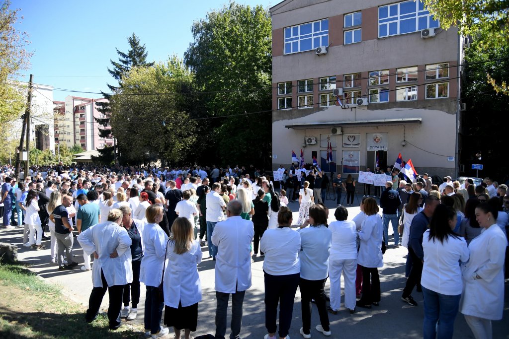 „DALjE RUKE OD BOLNICE“ Zdravstveni radnici protestovali zbog upada tzv. Kosovske policije u KBC Kosovska Mitrovica i Dom zdravlja (FOTO)
