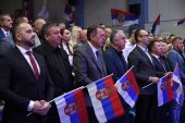 ZAVRŠEN VELIKI MITING SRPSKE LISTE U ZVEČANU: Hiljadu Srba u sali ponosno nose sprske trobojke (FOTO)