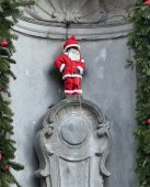 VEDRINOM SE BRANI SLOBODARSKI DUH: Maneken Pis, originalna fontana koja predstavlja zaštitni znak Brisela, ovih dana prerušena u Deda Mraza