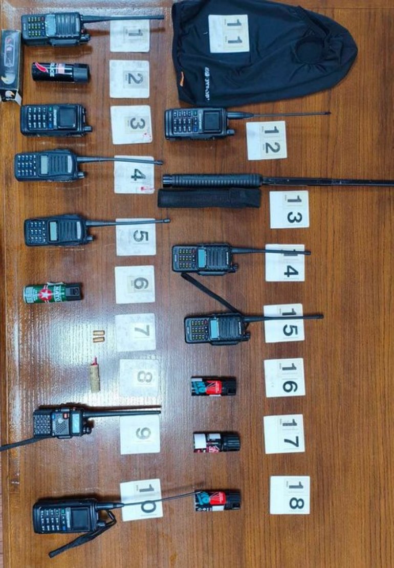 Pretresom osumnjičenih i njihovih vozila policijski službenici su pronašli i oduzeli metalnu teleskopsku palicu, pet biber-sprejeva, dva metka nepoznatog kalibra, kapu "fantomku" i devet ručnih radio-stanica. A. G, N. M, M. O. i Z. Z. je po nalogu osnovnog javnog tužioca u Velikoj Plani određeno zadržavanje do 48 časova, nakon čega će, uz krivičnu prijavu, biti privedeni nadležnom tužiocu.
