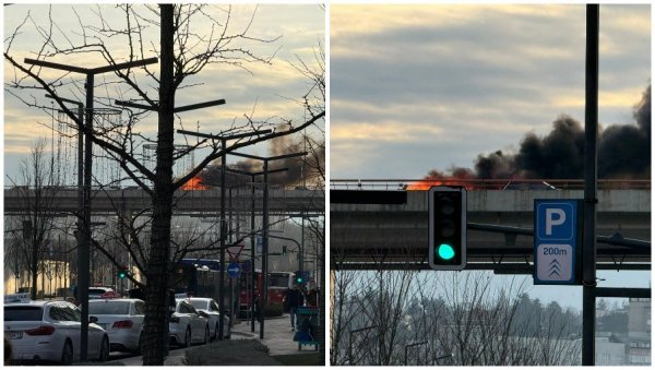NA MOSTU Gazela u smeru ka Nišu zapalio se jedan kombi.