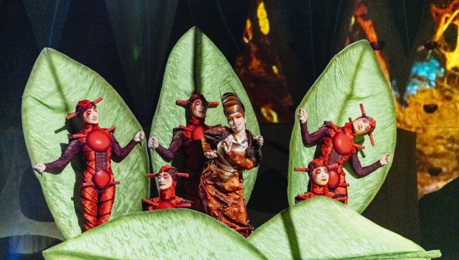 Predstava „OVO“ vodi publiku u razigrani i živopisni univerzum insekata, gde akrobacije, ples, muzika i kostimi zajedno stvaraju dinamičnu proslavu života i prirode.