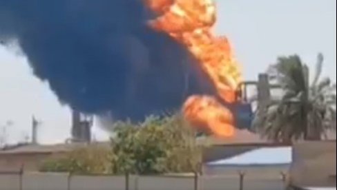 Snimci koje su emitovali lokalni mediji prikazuju intenzivan plamen i gust stub crnog dima koji se diže sa lokacije.