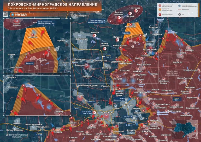 Na pokrovskom pravcu, ruska „Centar“ grupa govori o povoljnijim linijama ka Rusin Jaru i o pritisku ka Šahovu i Sofijevki. U okviru onoga što izveštaji nazivaju „dobropoljskim izbočajem“, pominje se presecanje jedne lokalne rute koja povezuje Sofijevku sa Kostiantivkom i ulasci u zone Kučeriv Jara, uz obnovljen pritisak na Zolote Kolodjaz, Vesele i Gružko.