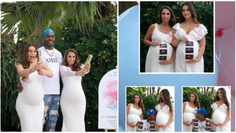 Na snimku su se smejali, grlili i slavili, dok su baloni u roze i plavoj boji leteli u nebo.