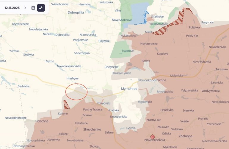 Prvo, iz Kotlina zapadno od Pokrovska. „Siva zona“ se takođe proširila prema Grišinu, ključnoj bazi ukrajinskih oružanih snaga zapadno od grada, odakle se borbe nastavljaju dva kilometra dalje.