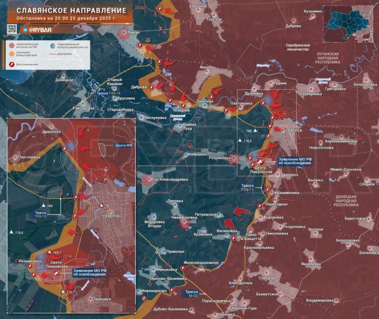 Pokrovsk (Krasnoarmejsk), sa 61.000 stanovnika, bio je jedan od najvećih gradova pod ukrajinskom kontrolom u Donbasu. Borbe su počele leti 2025, a nakon žestokog otpora grad je osvojen sredinom decembra, što je istovremeno dovelo do okruženja ukrajinskih snaga u Mirnogradu.