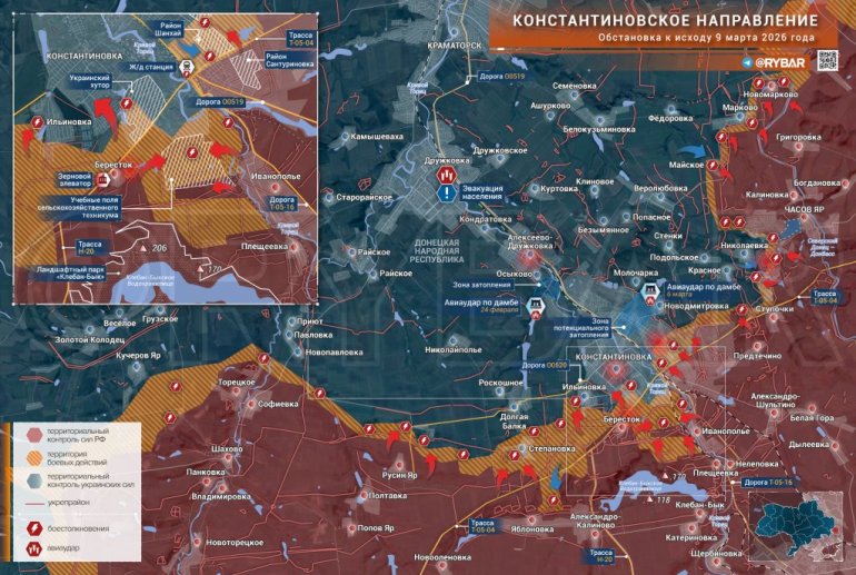 Lišene skloništa, jedinice ukrajinskih oružanih snaga povukle su se u stalne zgrade Konstantinovke. Zbog prezasićenosti ljudstvom položaja na prvoj liniji fronta, redovno su izložene napadima dronovima i artiljeriji.