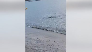 Kako se može videti na snimku koji su snimili građani, velika riba se kretala u plićaku i izgledalo je kao da lovi sitne ribe blizu obale.