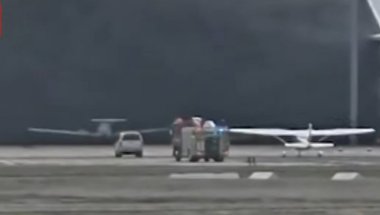 Dodao je da je požar u hangaru ugašen i da je aerodrom zatvoren, dok hitne službe i dalje rade na terenu.
