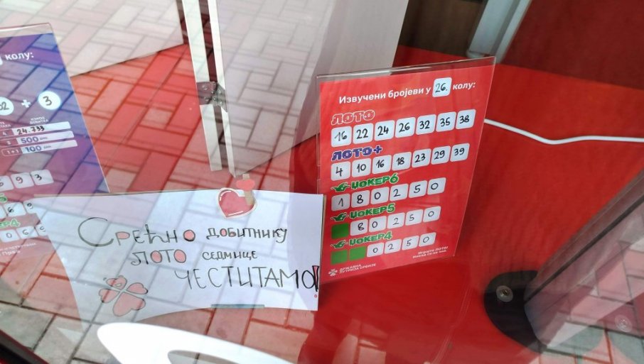 U izlogu dva puta srećnog uplatnog mesta od jutros su istaknuti izvučeni brojevi 26. kola, uz čestitke dobitniku.