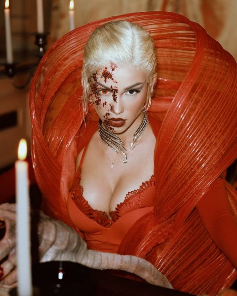 Mlada pevačica napravila je vrhunski fotosešn povodom ovog praznika i iznenadila javnost nesvakidašnjim izborom kostima - maskirala se u Atropos, jednu od tri Moirai (sudbine) iz grčke mitologije.