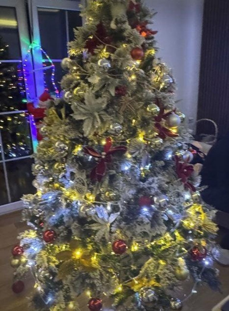 Tanjina jelka do plafona oduzima dah, a na njoj se nalazi mnoštvo lampica, cvetova, loptica, Deda Mrazića i ukrasa koji su učinili novogodišnje drvo čarobni.