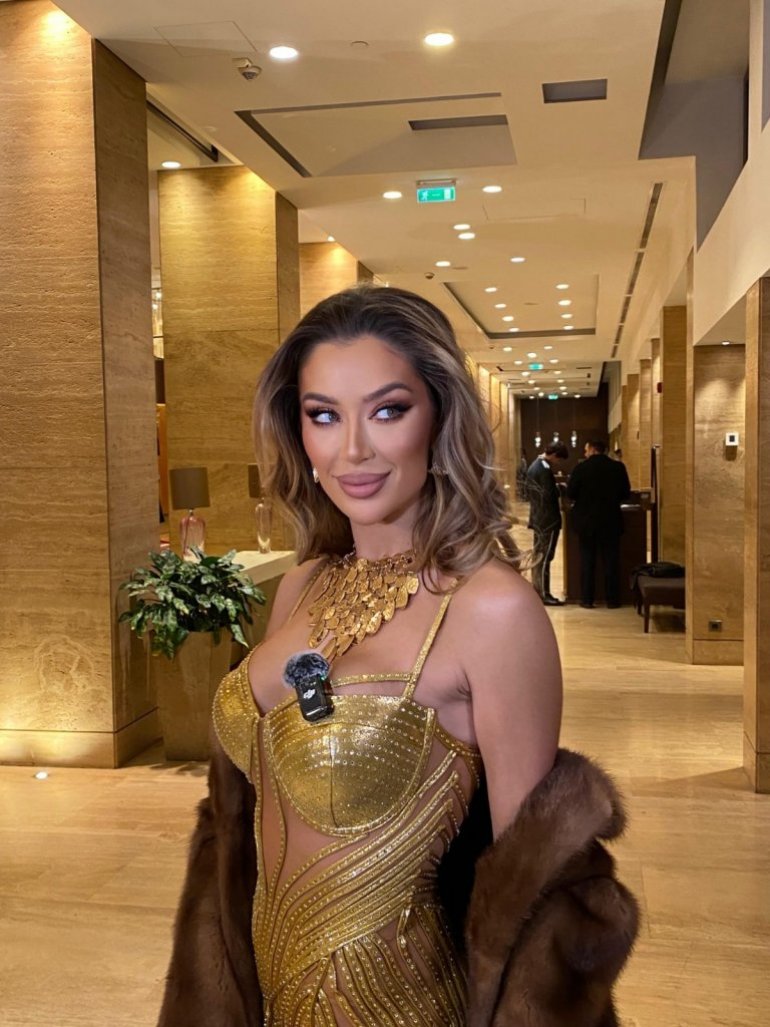 Pevačica je stigla blistajući u zlatnoj kombinaciji od glave do pete, dok je svaki detalj stajlinga bio pažljivo uklopljen.