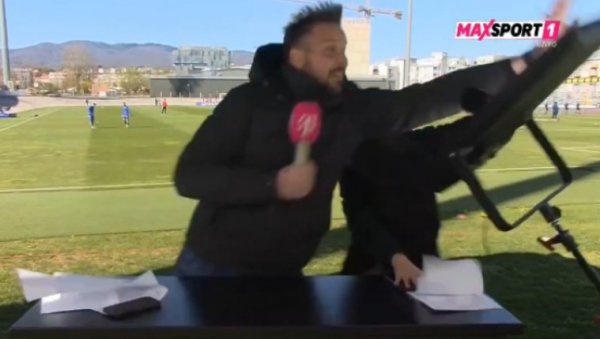 Nekadašnji reprezentativac Hrvatske i čuvar mreže Dinama iz Zagreba je razgovarao sa prelepom novinarkom, ali je veoma snažan vetar otežavao rad. Pa čak ih i ugrozio.