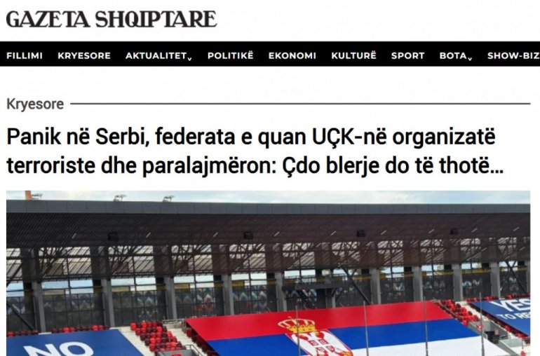 Albanci su objavu srpskog saveza iskoristili da dodatno "zapale vatru" i podignu tenzije pred meč. Tamošnja "Gazeta Šiptare" prenela je saopštenje sa podgurljivim naslovom