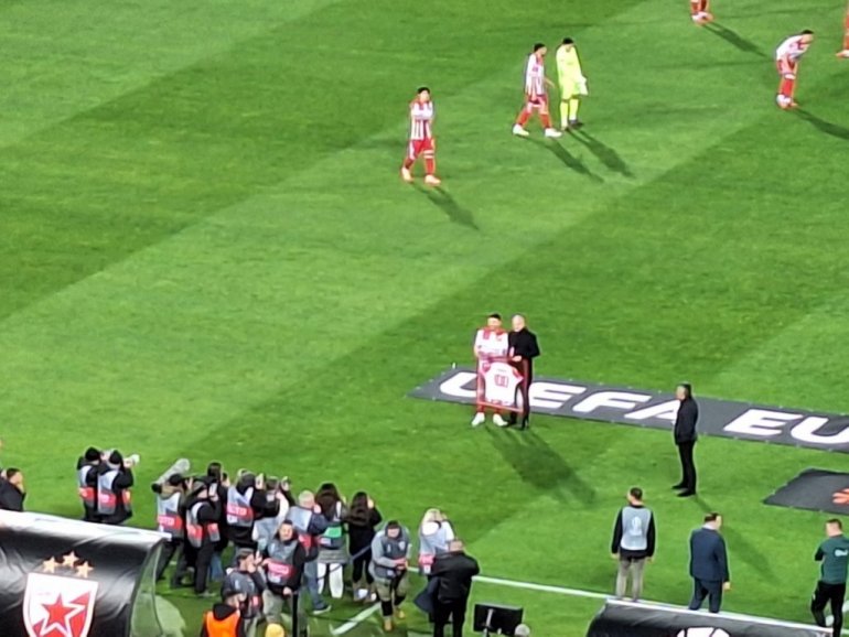 On je upisao 100. nastup u dresu Zvezde, a uručen mu je i dres sa tim brojem.