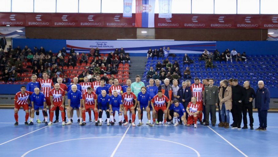 U sportskoj dvorani "Prof. Dr. Branislav Pokrajac" u Beogradu danas je odigrana revijalna fudbalska utakmica između vojnih i veterana Crvene zvezde.