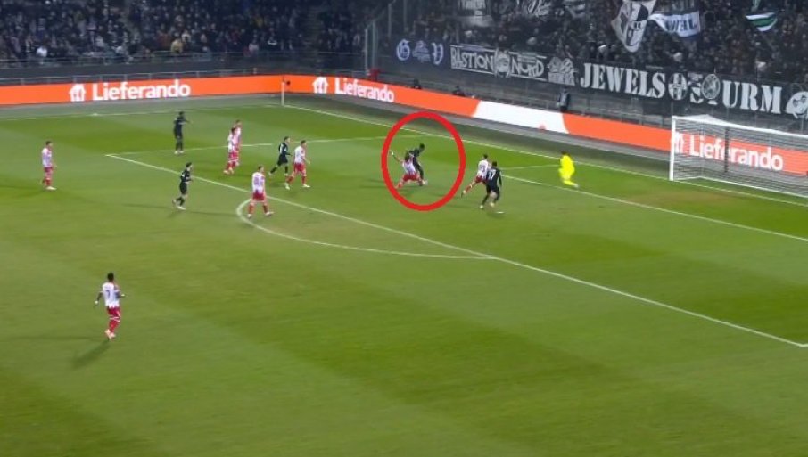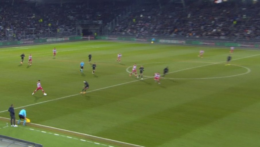 Ipak ništa od gola! Ofsajd je. Na začetku napada igrač Zvezde našao se u nedozvoljenoj poziciji.