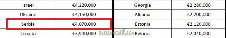 Srpskom fudbalu iz kase UEFA stiže 4.070.000 miliona evra, što je našu zemlju svrstalo na mesto iznad Hrvatske, koja iz fonda solidarnosti dobija 3.990.000 evra ovoga puta. Tik iznad Srbije na ovoj listi je Ukrajina, sa 4,15 miliona.