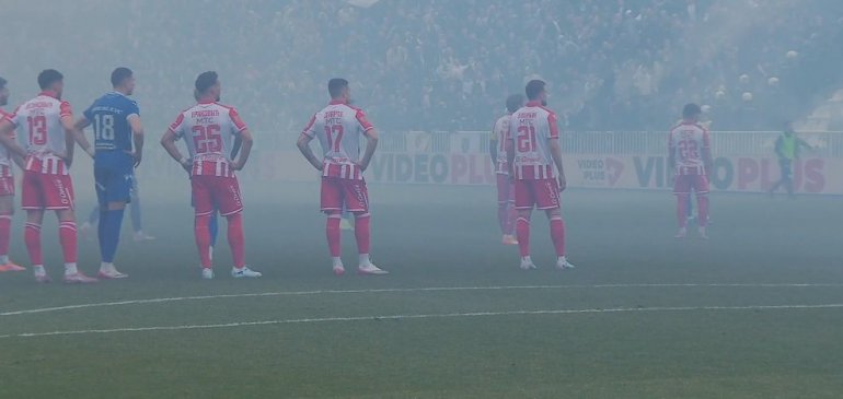 Prekid je trajao više od pet minuta, da bi pošto se dim spustio, sudija Nikolić odlučio da nastavi duel. Potom je usledio šok za šampiona, koji je kapitulirao! Uspeo je domaćin da zatrese mrežu Mateusa u 7. minutu, međutim, iz nedozvoljene pozicije, pa je visoko podignuta zastavica spasila Stankovićev tim.